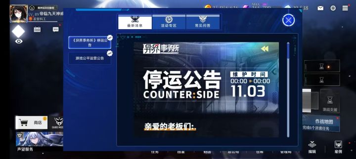 🚨四年陪伴终落幕:《异界事务所》官宣停服,紫龙代理首款停运二游谢幕🚨🤔11月3日,紫龙游戏正式发布公告,宣布代理的《异界事务所》国服将于2026年1月8日终止运营,目前已关闭新账号注册与充值功能。✅️这款曾以"CLike良心作"标签圈粉无数的二游,最终未能扛过市场考验,成为紫龙代理产品中首款停运的作品,为四年运营画上句点。✅️作为紫龙代理的首款停运二游,此次停服也暴露了海外代理的固有难题。🤔