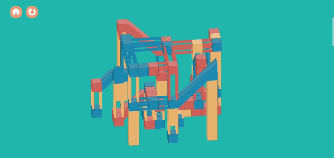 第17关的关键点和14其实是差不多的,有个地方是两个楼梯重叠的地方,当转二维的时候本来在后面的小方块会被判定到前方,就可以继续走了。和14关不同的是17关在上到第三层之后还需要下回第二层转换位置才能到达终点(最开始有个地方我一开始玩的时候可能是有bug,容易过不去,但是多次重启之后就可以通过了) 视频略长,大致有三分多钟,可以拖动到中间进行观看