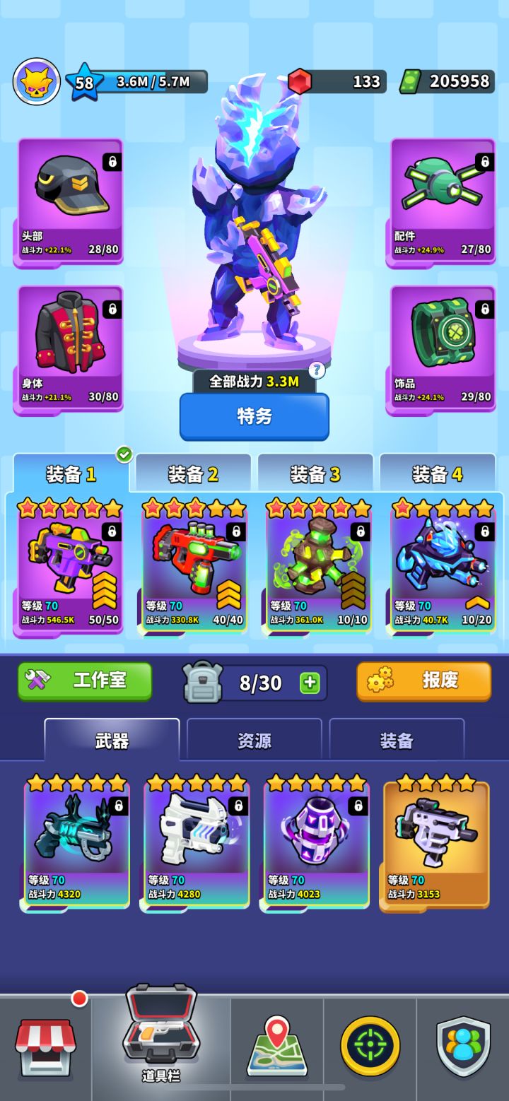 美中不足的是后期难度陡增,敌人仇恨机制强化与血量提升明显,不升级武器或付费获取宝石易陷入卡关;武器强化后易被新武器替代,前期强化资源存在浪费;宝箱持有数量受限且解锁需长时间等待,部分界面偶有广告关闭按钮缺失的BUG;付费设计偏向引导性,宝石产出稀少而消耗量大,容易引发玩家付费压力。