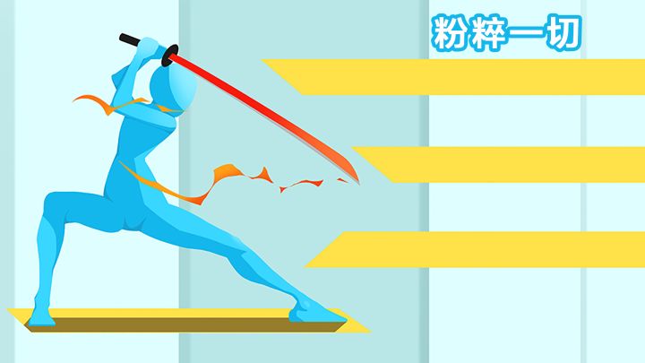 玩法设定简单,操作自由度极高,玩家采取第一人称视角身临其境,只需滑动手指挥舞各类刀剑,就能粉碎敌人、子弹、飞镖、炸药桶等一切阻碍。