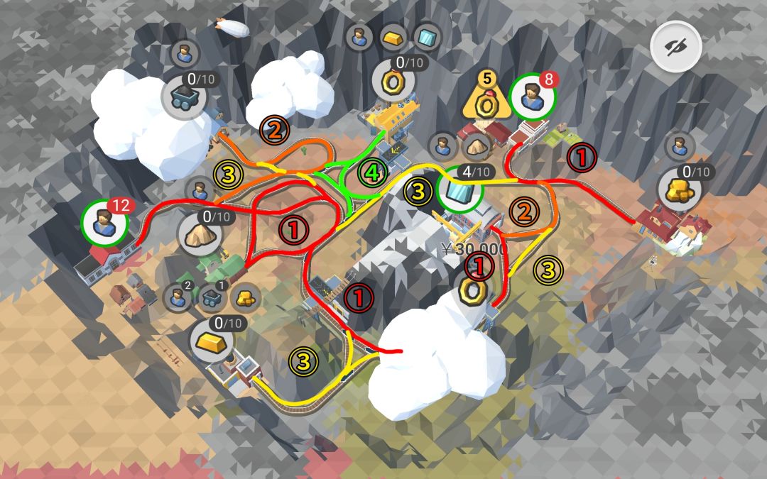 一款很需要策略与并行思维的益智类游戏,下面来看下它的前3关流程攻略~ 序 流程:手指拖动画面到最大——点击三角形木材图标——点击建造,选择铁路的两个端头然后确定修建——点击工人图标——等待工人过去,木材数量足够2以后,点击木材图标运回来——点击右上角x1变2倍速——点击隐藏交互界面,再点击回来,完成第1关。 说明:没任何难度,第1关就是给玩家熟悉下基础操作的,根据引导完成即可,第一次玩别跳过引导,