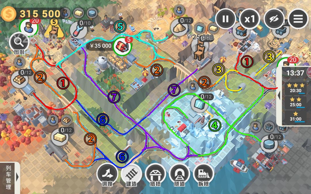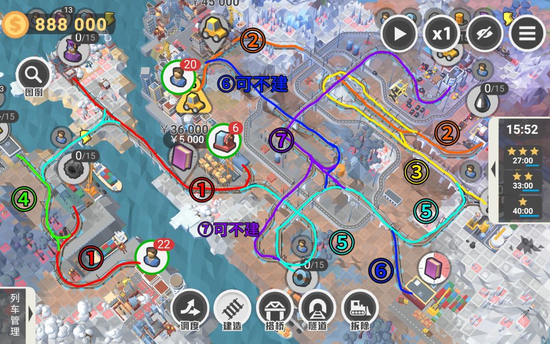 五星要求铁路铺片不能超过260块,这关不难虽然限制数量但我建了这么多也没超