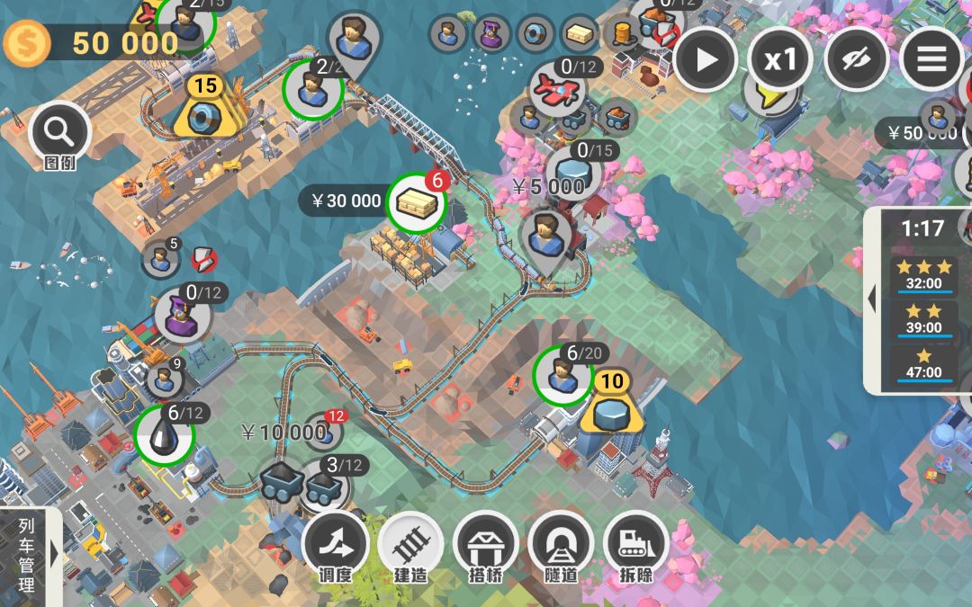 第31关 第32关 第33关 第34关 第35关 第36关 第37关 第38关 第39关 第40关,注意⚠️如果不想生产目标以外多余的材料来赚钱的话,不要买新的列车和提前建造后期才会用到的隧道或者桥梁,不然后期钱会不够用,将三辆列车升级升满即可。