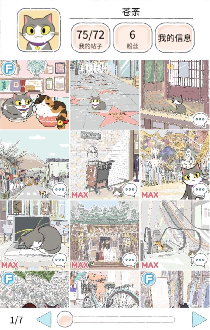 玩了几天大概摸清玩法了,先稍微总结一下,有不足的地方等快全收集的时候再补充。一、基础玩法讲解:咦?我打开这个游戏到底要干啥?首先,游戏的基础玩法就是消耗点赞数买票送猫出门旅游,猫拍了照片发猫友圈吸引点赞这样的反复收集充实图鉴的过程。可玩性……几乎没有,就是一个画风清新的休闲小游戏,空闲时打开手机点点就行了。时间不同的旅程,猫会去的地点不一样,照片能够获得的点赞数量上限也不一样,如果你的猫