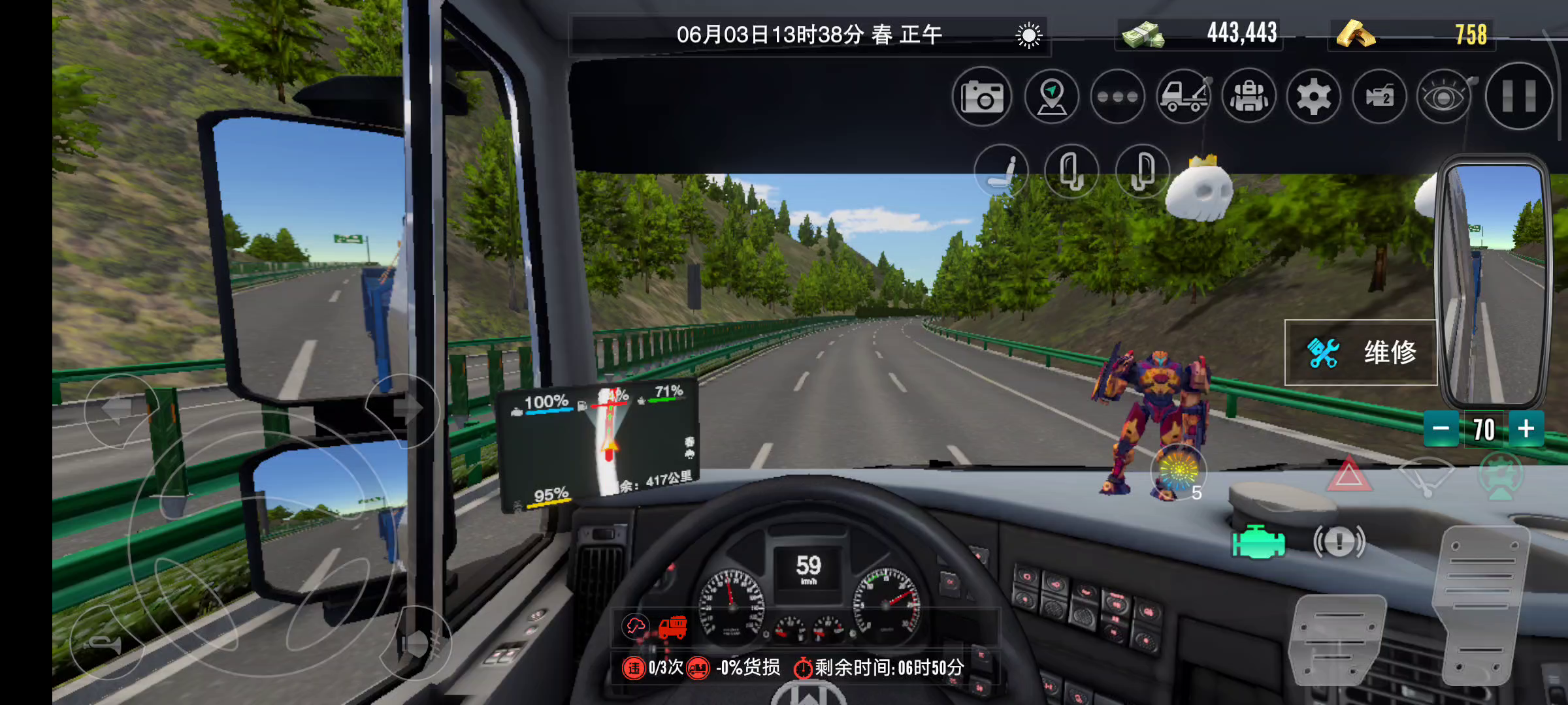 从服务区出来,维修按钮一直都在,咋回事?还能正常使用。。。。。。 #卡车之星 #卡车之星bug #游戏日常