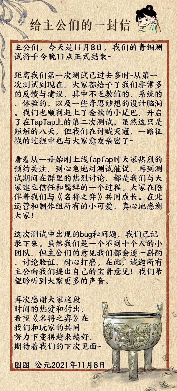 同时测试期间,每天会在评论区从符合格式的反馈中,随机抽取3位主公送上十连抽(人卷*10)哦~