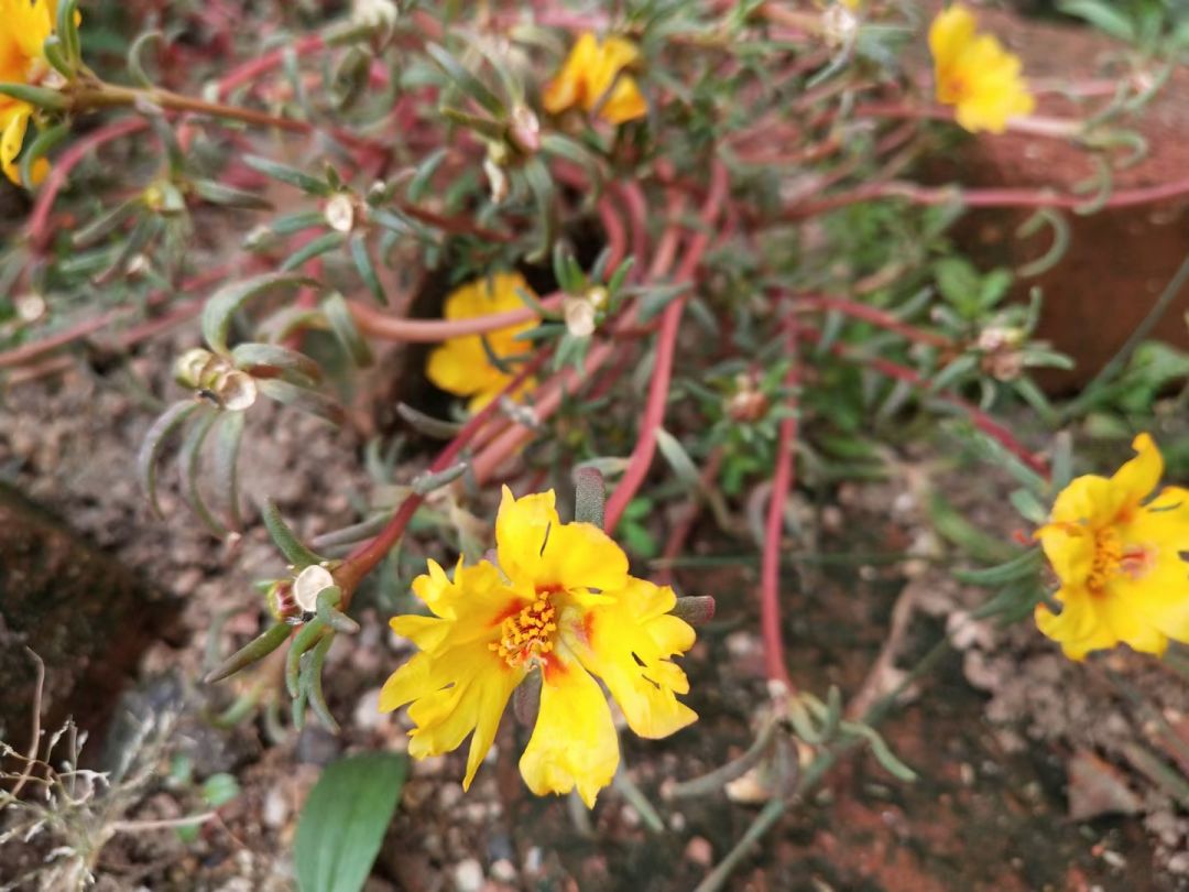 (好久没搞的科普系列ʕ ᵔᴥᵔ ʔ以下科普内容均来自百度百科) 大花马齿苋 (图二源自网络) …………………………………………………… 别名:半支莲、松叶牡丹、龙须牡丹、金丝杜鹃、洋马齿苋、太阳花、午时花。 一年生草本,高10-30厘米。日开夜闭,花瓣5或重瓣,花色为红色、紫色或黄白色,花期6-9月。 原产南美、巴西、阿根廷、乌拉圭等地。中国各地均有栽培:大部分生于山坡、田野间。 喜欢温暖、阳光充