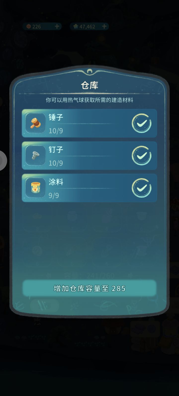 热气球回来的时间越来越长了,从十几分钟已经到现在三个半小时了…这等级再升下去,这游戏还能玩吗?关键他每次飞回来的都是就某一种东西特别多,根本不需要的破铲子啥的。带回来老多了,等几个小时就带回来这些破烂玩意儿半天都升不了仓库,一天勤快点,定着闹钟上线。运气好才能升一次仓库才给二三十个格子