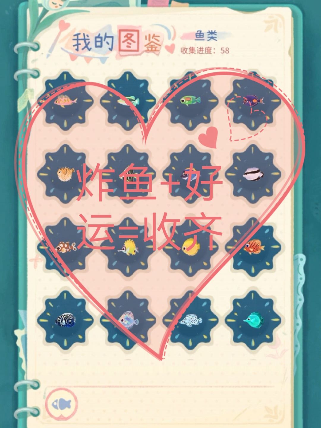 以为要关服,随便换了个炸鱼,本来还挺后悔的,今天把鱼炸齐了,行吧,也算是个安慰奖。#晚安森林 #我的晚安森林 #晚安森林的慢生活 #向全世界安利晚安森林 #发现好游戏 #游戏种草计划 #游戏日常 #休闲游戏 #今天游戏圈发生了啥