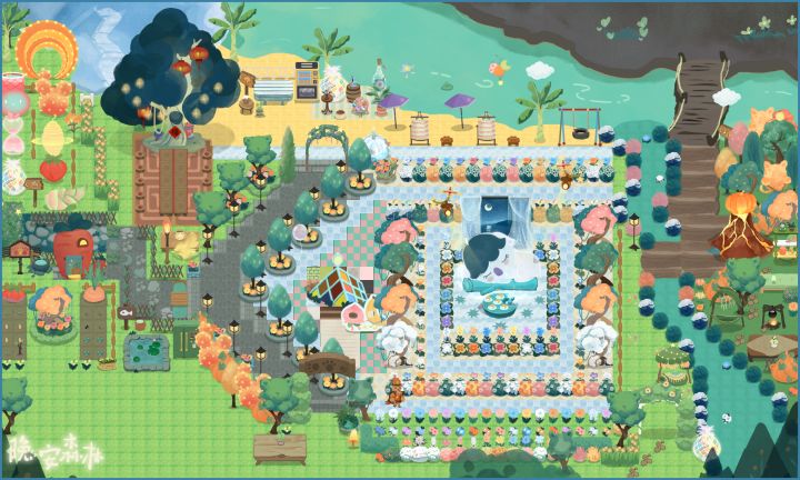 甜心河畔主题为空中花园(其实是为了把花摆出来),具体布局如下:中庭:空中花园,睡眠之神召唤处步道:魔方风格散步区域田园:分巨大化展示区+种植区,种田人,种田魂星光🌳:年夜饭特设场地沙滩:椰子树衍生主题海岸线余白:等待新家具填充#发现好游戏 #晚安森林 #治愈系游戏 #休闲游戏 #游戏日常 #布局