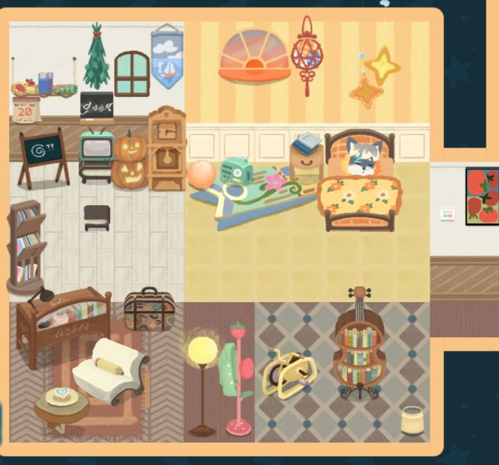 根据小咕咚的喜好装修了房间猫酱喜欢小黄花,我便送给他全是小黄花的房间。为酷鹅量身定制了符合他rap明星身份的房间在月梨的房间摆满了他的雕刻作品篮球明星柴柴喜欢鸡蛋,送给他鸡蛋床和苹果哑铃给夏洛侦探的房间,布置了电话,电视,天线,方便他寻找线索。雨人的房间当然必须是森系清新风北北喜欢泡澡和