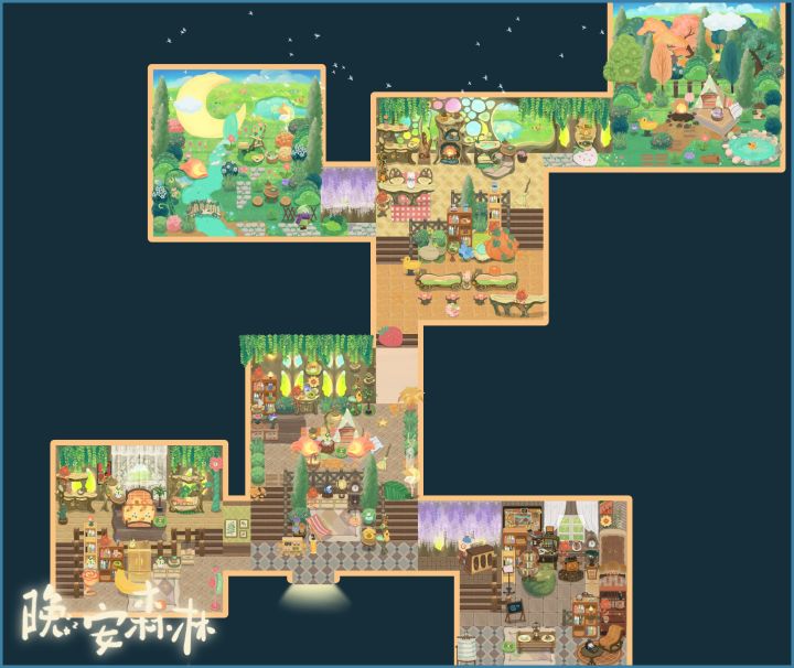 六间房已经装修完毕,希望小咕咚能住的舒心,过的开心月梨:独居思考者,蓝紫色主题阿狐和猫酱:自然森系,猕猴桃和西瓜展柜,黄绿色主题黑米和夏洛:图书馆管理员,复古风主题柯柯和柴柴:狗狗派对,合作开店,原木烘培风兔灵和贝贝:闺蜜合租,奶油与海洋的碰撞,粉蓝色主题#向全世界安利晚安森林 #晚安森林 #治愈系游戏 #布局 #休闲游戏 #游戏日常