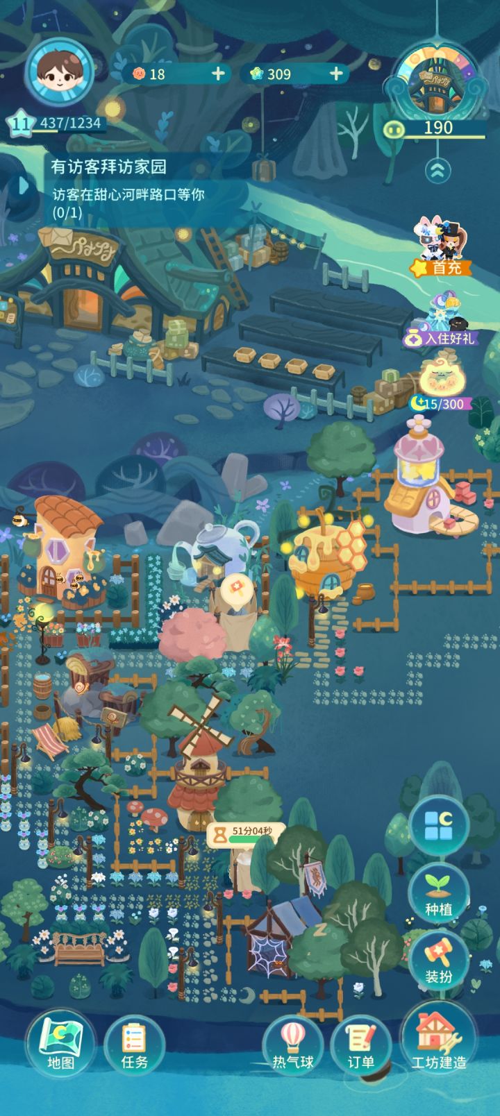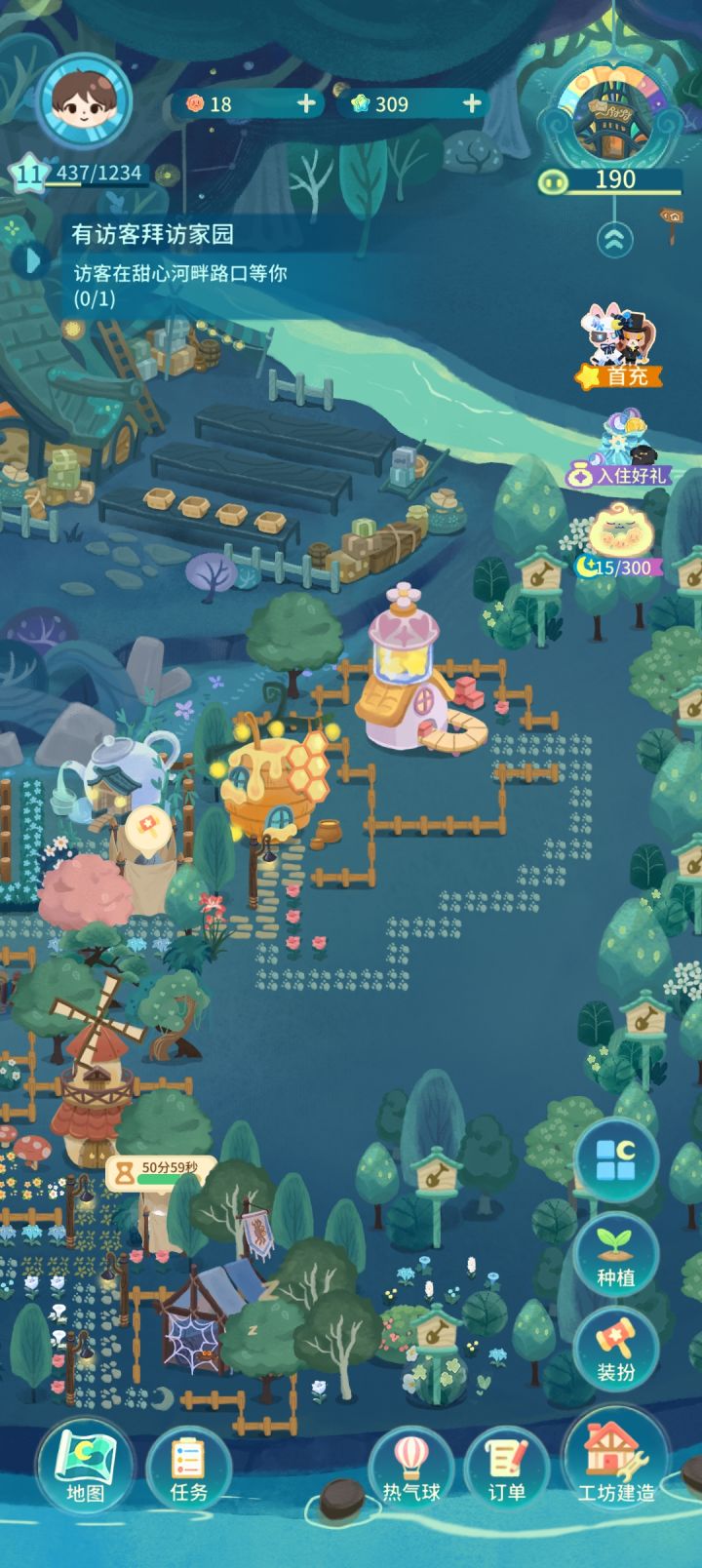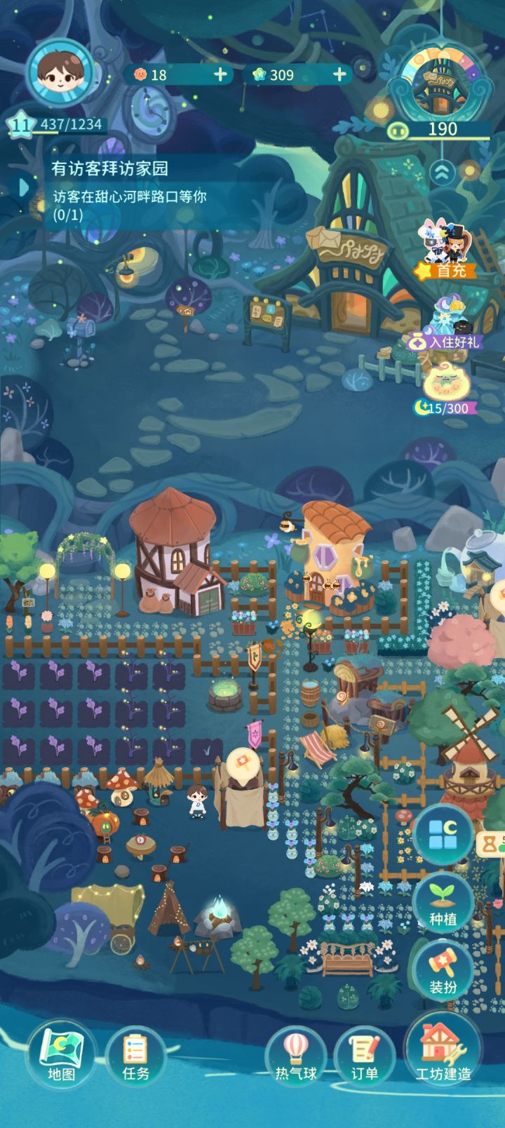 玩了一晚上,我一个大男的简直被这画风抓到了,这是我现在的布局,现在就慢慢玩,真佛系,种田建造,布置,很适合我胃口,让我想起了月兔这个游戏