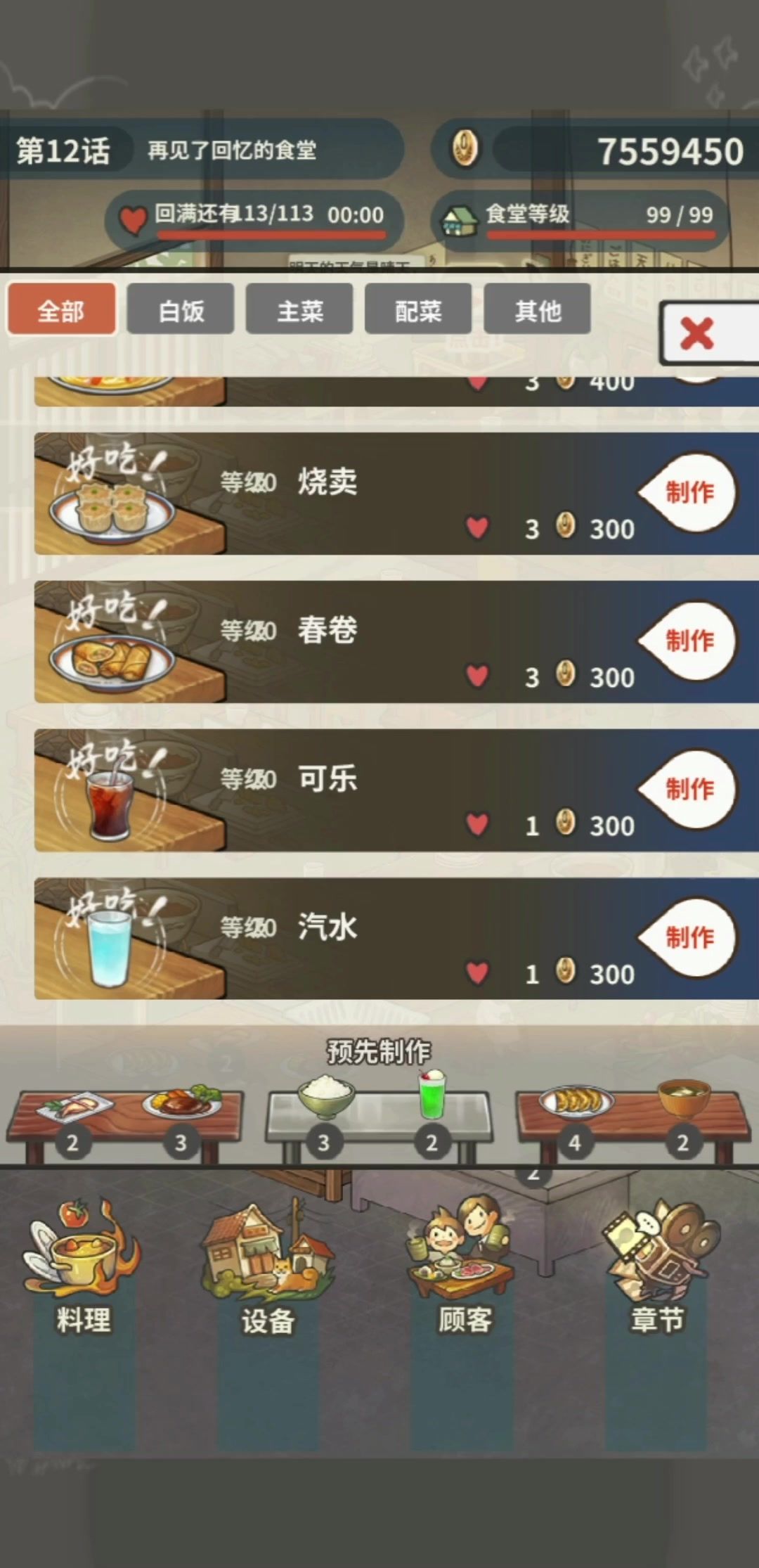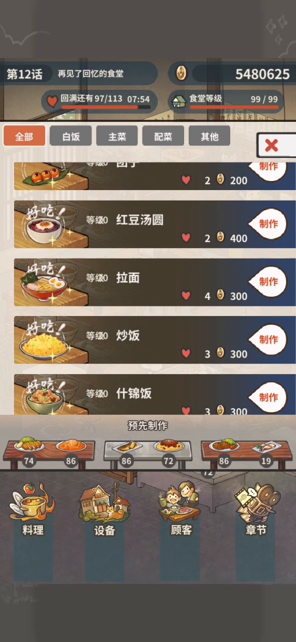 当年,我花了四周的时间,将第一个食堂完善好,并将所有料理练就到登峰造极。 今天,另一家食堂,另一套菜单,另一波客人,我从开始到全料理满级,只用15天。