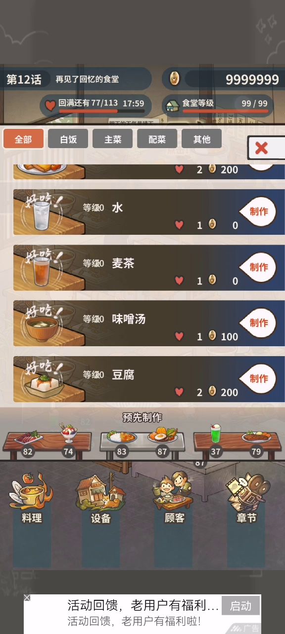 当年,我花了四周的时间,将第一个食堂完善好,并将所有料理练就到登峰造极。 今天,另一家食堂,另一套菜单,另一波客人,我从开始到全料理满级,只用15天。