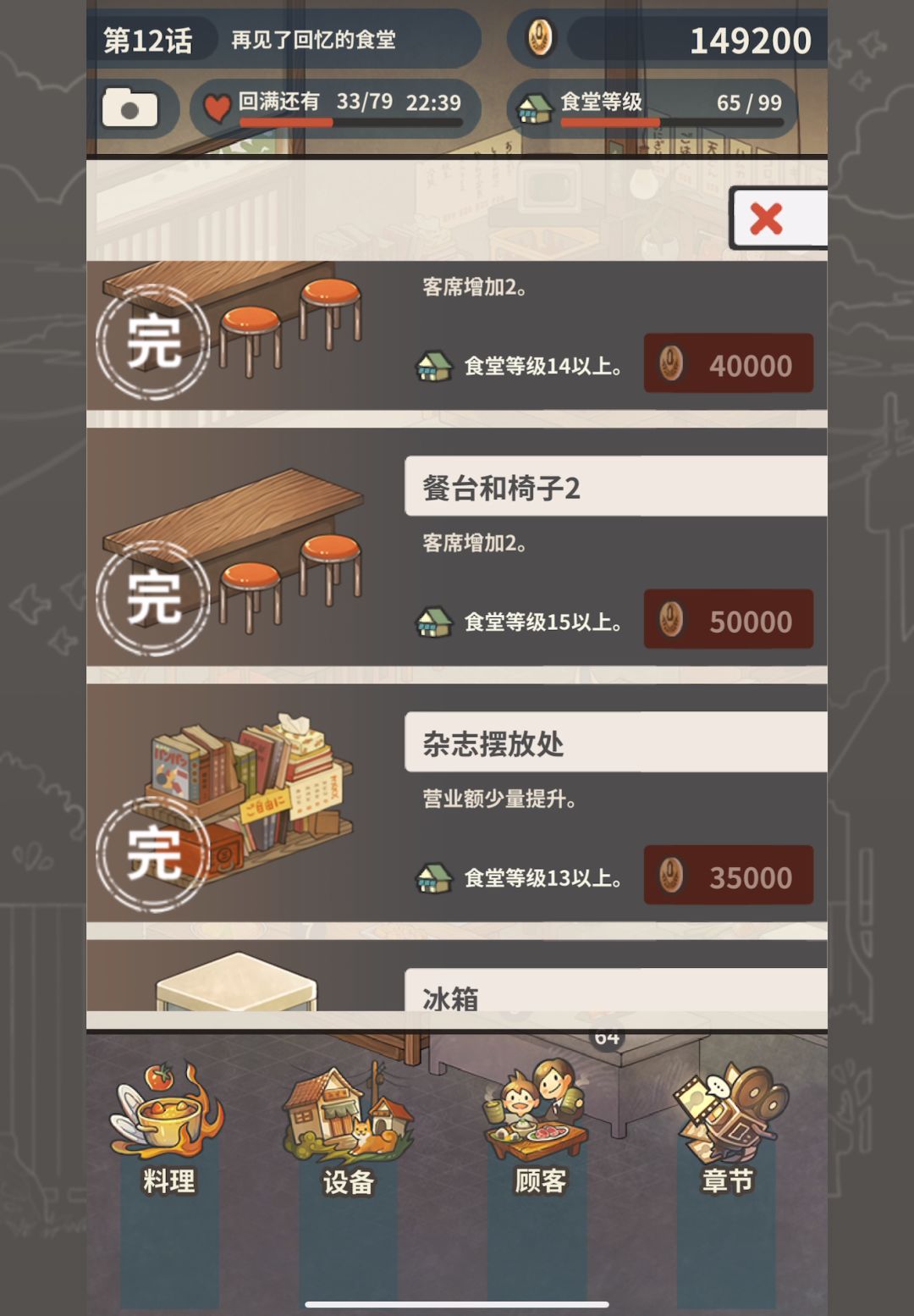 解锁所有菜品,设备,人物和剧情(太不容易惹qwq)