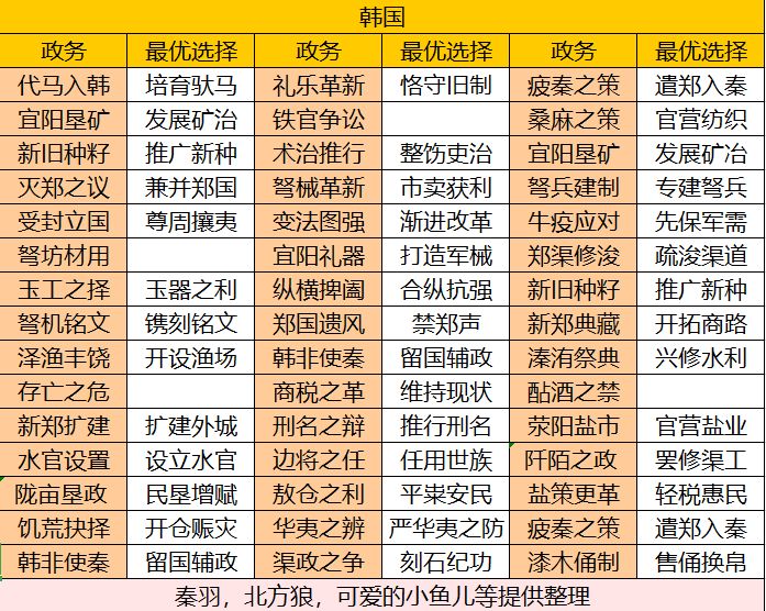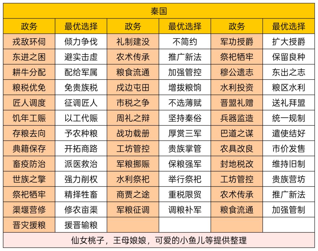 大家有不确定的,帖内没有的政务,都可以回帖。 每个国家政务不同,此帖为秦国政务。