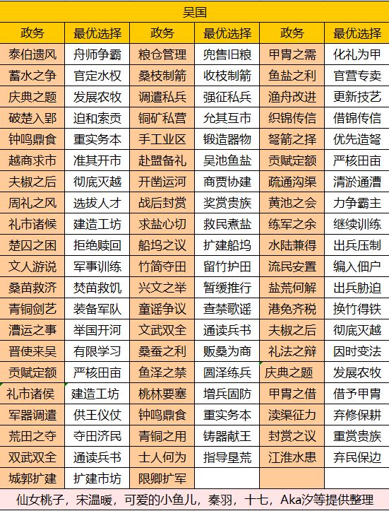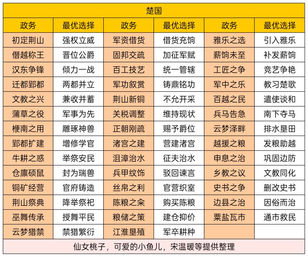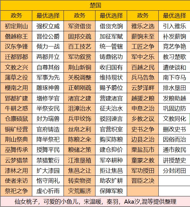 大家有不确定的,帖内没有的政务,都可以回帖。 每个国家政务不同,此帖为楚国政务。