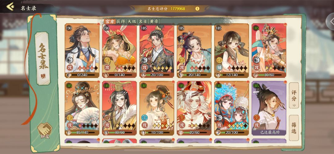 一、名士系统概述 在《华夏绘世录》中,名士是战斗的核心单位,按照五行属性(金、木、水、火、土以及两仪)和品阶(天、地、玄、黄)进行划分。合理的阵容搭配和养成策略是游戏进阶的关键。 二、名士养成 1. 品阶等级 天阶名士:最高稀有度,基础属性高,技能强大 地阶名士:次稀有,技能较为强力 玄阶名士:中等强度,容易获取 黄阶名士:基础单位,前期过渡使用 2. 名士养成指南 (1).命格: