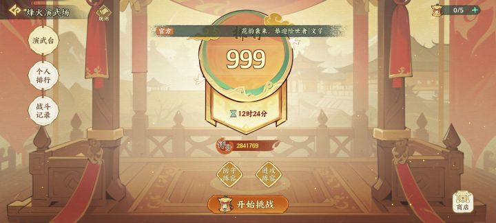 请问今天开了烽火演武场,打赢了5场,怎么没有数据和排名