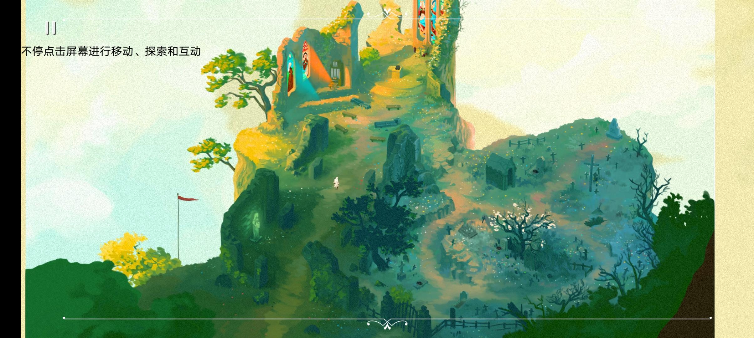 一开始是主角从一个地方跑出来,一开始是全部黑白灰,然后逐渐有音乐和颜色,感觉很神圣的音乐,配上唯美的画风,挺沉浸的。每一个行为都会让画面产生不一样的效果,这点我也觉得做的挺好的,其实没有什么特别多的文字,主要是由音乐和画面在推进整个故事,但是渲染氛围渲染的很好