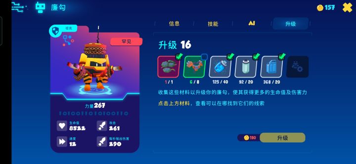 开放世界的机器人冒险游戏,收集机器人,打野怪刷级,然后道馆pk,有以前玩宝可梦的感觉了。目前还在测试,机器人比较少,只有31种,游戏倒是不需要氪金,但是还是有点肝。 欢迎使用中文的小伙伴加qq群讨论:427556675