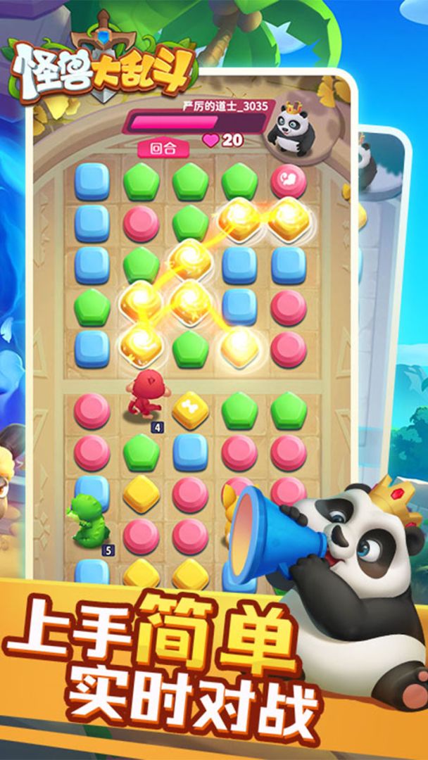 《怪兽大乱斗》是一款休闲三消对战手游,在游戏中玩家将扮演一名的驯兽师,建立起自己的怪兽编队,来迎接各方的各种挑战。你可以按照自己的喜好去收集和升级各种怪兽,发挥出不同怪兽的专属技能,去打败不同的对手,只有赌上脑力和运气才有机会赢得胜利。
