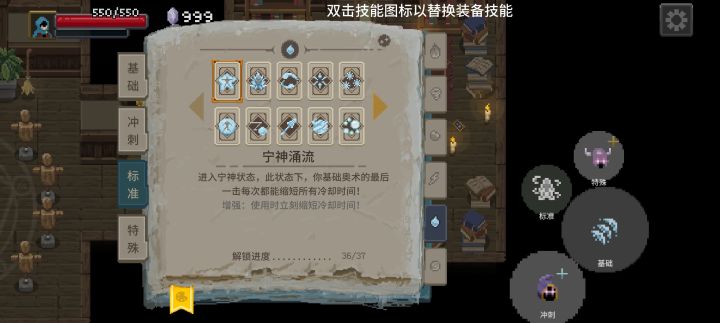 玩了两天,终于度过新手期,全技能、全斗篷、全物品解锁。记录下历程,还有一些事后才知道的关键点,权当抛砖引玉,方便大家。有些是通关后回忆而来,难免有所纰漏。随时调整修改。零、前言①基本操作右上角设置可以调整技能位置和大小,有些玩法把技能位置重叠,操作会更流畅。重叠在一起的技能,只要技能结束时,有新技能CD已好,即可无缝衔接,不需要不停单击,长按即可。但是如果被攻击,就必须再重新长按,才