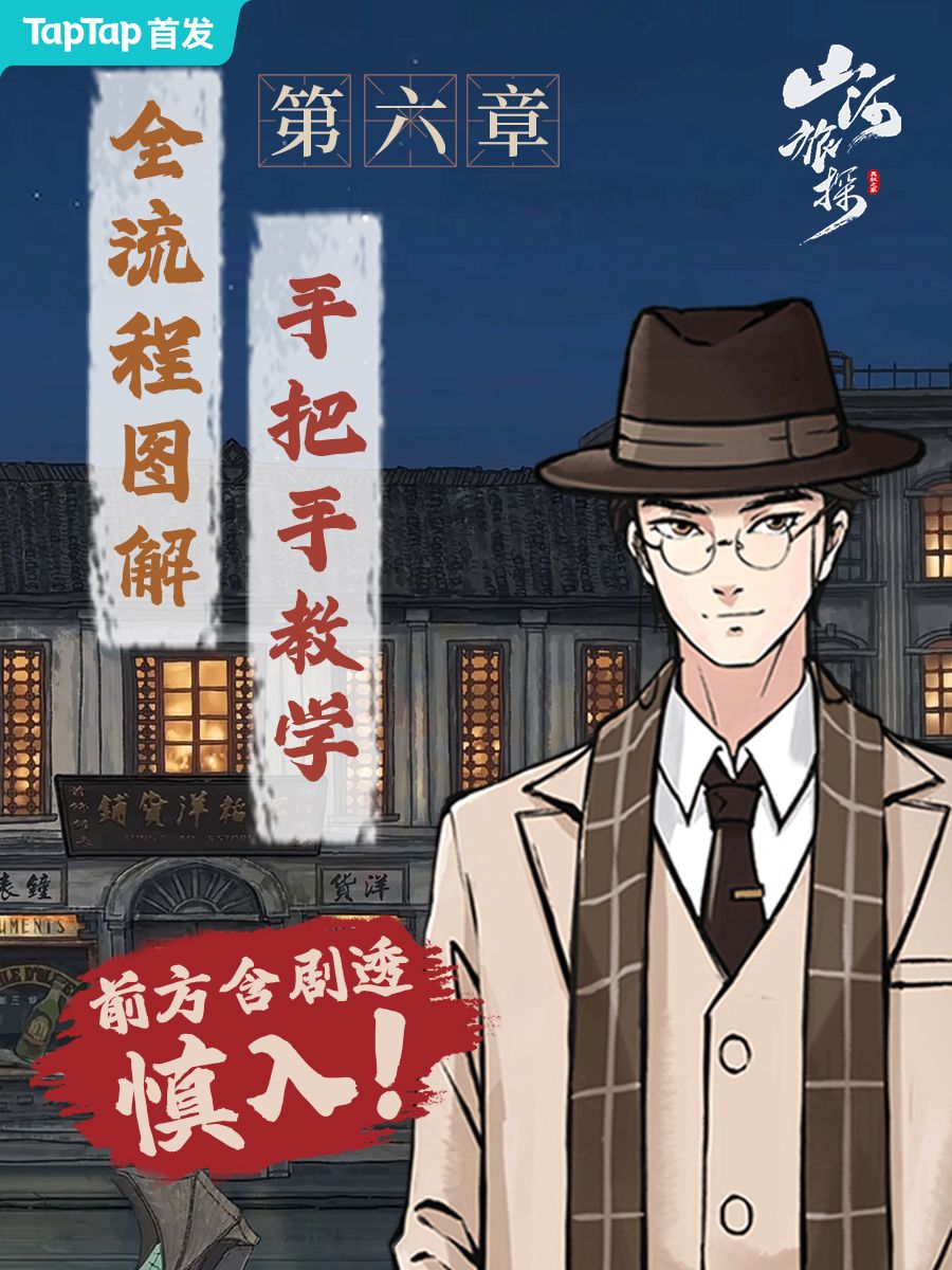 观前提示: 本攻略将会汇总推理过程中的全部关键正确选项,无需进行决策的内容本文将会省略,主要帮助卡关的玩家快速通关。攻略难免涉及剧透,想要沉浸体验请谨慎查看本文。 当你看到这里,山河旅探这款游戏也到了最后一章,相信你对这款游戏的玩法已经充分了解了。在这第六章开头我们将会来到老上海,可以在上海探索,第六章的内容量是非常丰富的。 第六章基本结构:主角被抓→阿福和文记者在各处探索收集证据和信息→阿福潜入