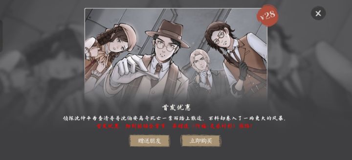等待许久,《山河旅探》手游版今天发售了!首章免费体验,后续内容一次性28元解锁。来到清末民初,成为一名侦探吧!玩法包含尸格检验、NPC调查、抽丝剥茧的推理和层层反转的剧情,Steam好评率达97%。主角沈仲平会如有神助地带领玩家思考,我们要做的是出示证据,跟上沈仲平的思路;而他的思路也需要玩家举证补齐与验证,双向推动循环,玩起来顺畅又爽快。洞庭烟雨的横轴场景,水墨国风的工笔画面。百年前的祖国
