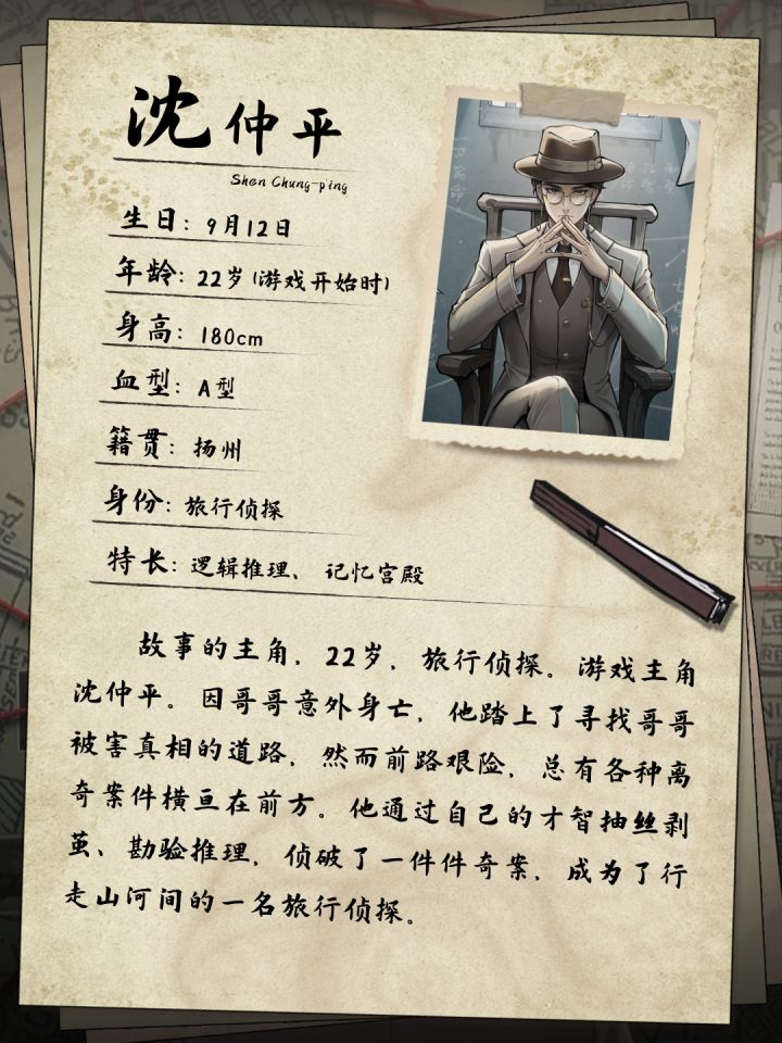 「在下沈仲平,是一名旅行侦探。凡有接触,必留痕迹。世间绝无真正完美之犯罪,唯有未被发现之线索。嗯,您是不是偷偷看过我刚印出来的档案了?您看,您手指上的油墨还没有干呢。」#单机游戏#国产游戏#宝藏厂商#二次元#山河旅探