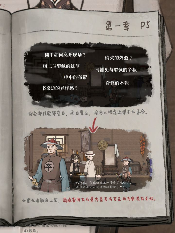 观前提示:本攻略将会汇总推理过程中的全部关键正确选项,无需进行决策的内容本文将会省略,主要帮助卡关的玩家快速通关。攻略难免涉及剧透,想要沉浸体验请谨慎查看本文。游戏开场后,随着剧情推进我们选择吃下潮糕,然后我们就会陷入昏迷,第一关正式开始!随后我们就会进行第一处剧情推理,细节可见图P1。如果发现无法触发攻略提及的相关解谜点位,请检查场景内可交互内容有无遗漏。经常需要把所有场景可交互内容都调查