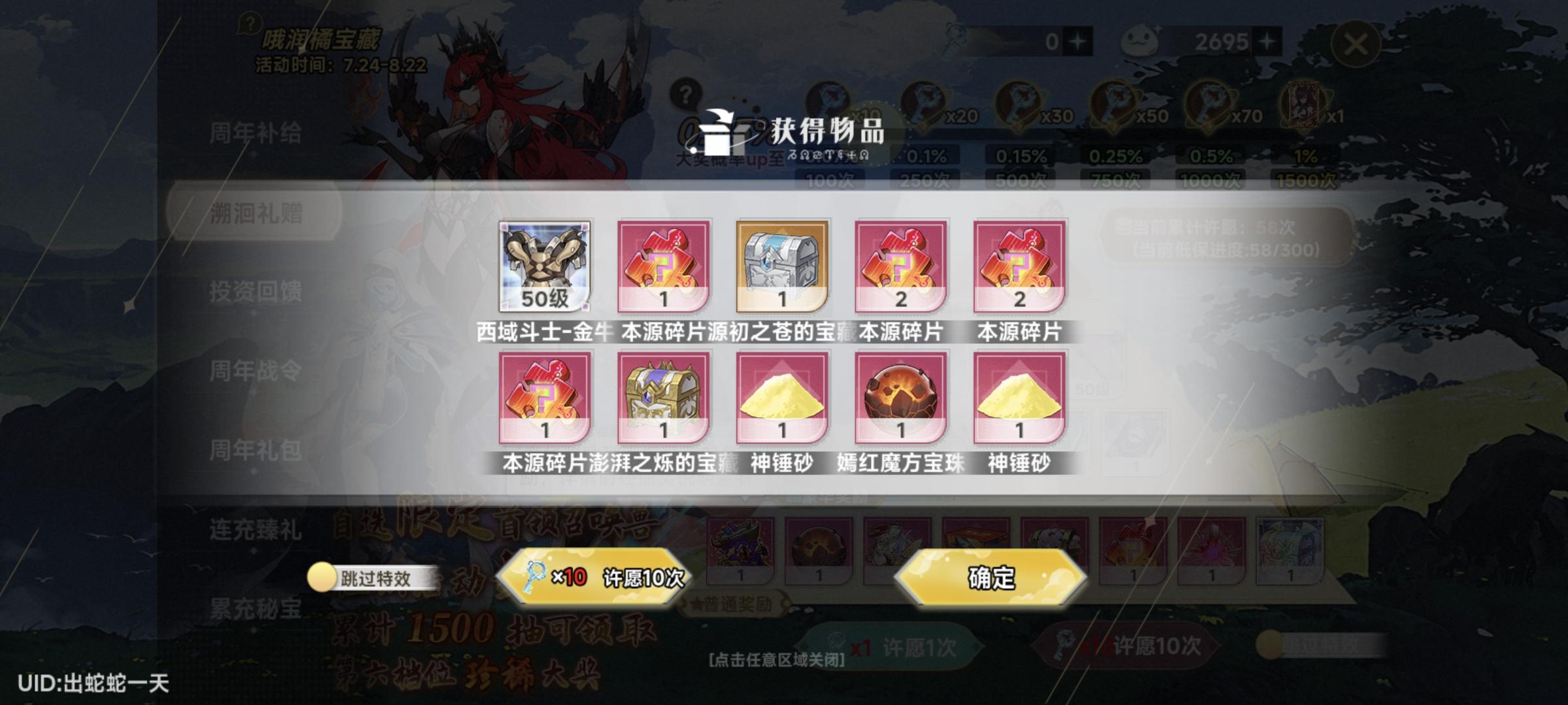 0氪总共可以获得530抽,共需要花费33000钻石 0氪且不花费一个钻石总共可以获取130抽 以下是所有钥匙的获取方式 周年庆兑换码:二周年快乐 兑换码给10个钥匙 在以下三个页面中每天都能免费领取一个钥匙,第一个页面那里每天还能用1000钻石买10个钥匙,活动总共持续30天,在这个地方能够获取的钥匙总数是390抽 在这个商店里面有个每天会重置次数的限购一次的钥匙,30天总共可以获取30抽,在这个