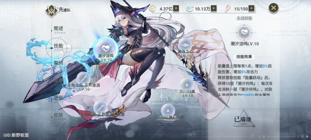经过昨天更新完到今天试玩,浅谈斯卡萨的玩法,如果哪里不足,望各位评论区讨论。 总体斯卡萨和光子贝丝贝拉很像都是堆能量堆暴击,光子贝丝贝拉主要是能量转全属性伤害加成,转光属性攻击加成,最终结果也是为了转成技伤,终伤。 而斯卡萨是直接能量爆伤转技伤,终伤。这一点主要在誓约和雕像那体现出来 1.技能;终极技能永劫龙怨-灭界漩涡,清空护盾,十段2000%水属性攻击(可暴击),清空能量1:1%增伤,10