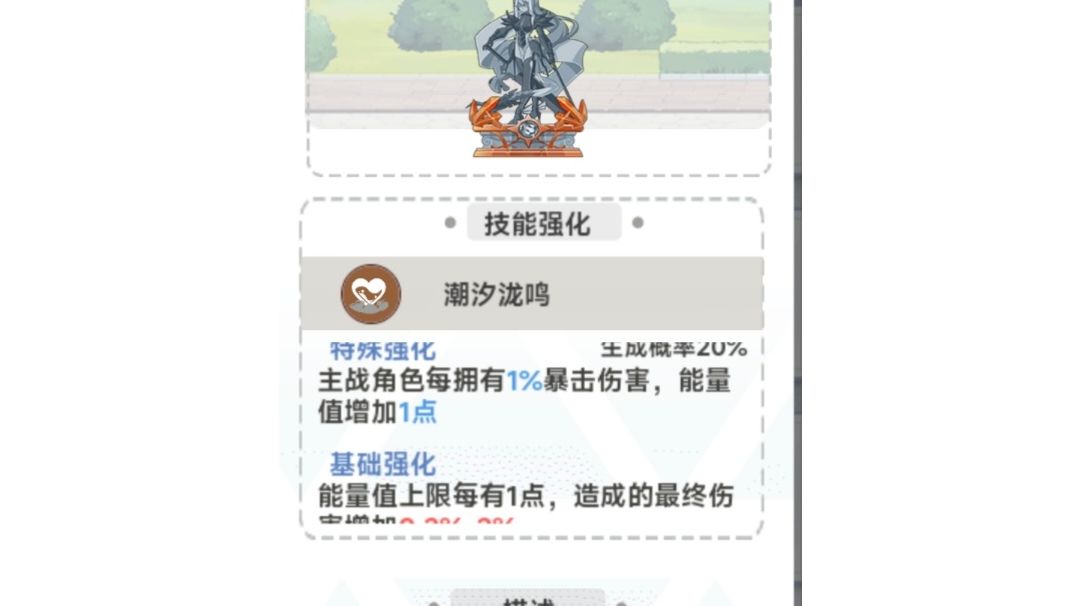 誓约效果:二命完全体,三四命纯数值提升,五命优化循环 命运雕像是绝对核心,没这个雕像的可以跳过这篇攻略中暴击相关部分 护石推荐:禁忌,鲜花,愤怒 一、角色特性分析 角色自身属性伤害加成机制较少,这意味着角色在基础状态下很难通过自身技能或属性获得大量属性伤害。因此,角色需要依赖外部装备或辅助手段来弥补这一短板。 二、核心需求 角色刚需大量属性伤害加成,以提升输出能力。属性伤害加成是提升角色在战斗中表