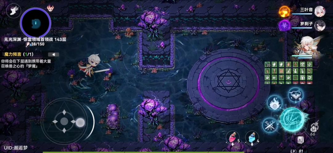 随从:零、亚里亚 提供高额生命值加成 零的大招配合魂噬契约造成高额伤害(冷却刚好都是30秒)。 亚里亚提供护盾与减伤,无多用,唯保命尔,追求极致输出可换成雅。 此阵容优势是不受关卡属性影响,水(零)克制火克制木(伊芙琳),一般关卡伊芙琳主战,火关卡零主战。 召唤兽:奈亚、爪爪、八爪鱼 奈亚能给自身提供攻击与暴击伤害加成,天生就是C位召唤兽,没有奈亚可以用恶魔智将或者蜘蛛。 爪爪提供能量回复,终焉的