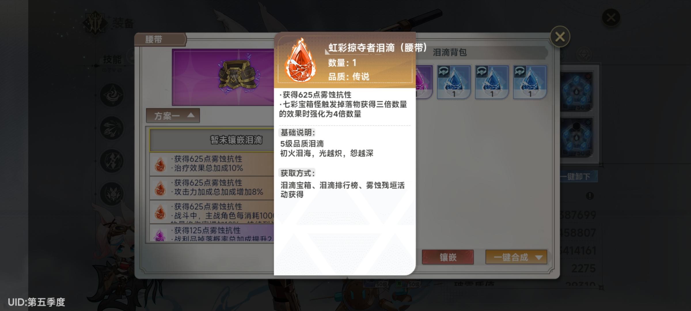 晚上不能玩史,合泪滴上头了,直接全合到至宝,2合1真刺激。出了个小小无尽怒火!需要一个诸神放大招,新无间装备手指-第一个冒险技能放无尽怒火,冰箱武器加冰箱魔瞳不带蛇衣直接触发冰箱,螺旋长枪普攻放无畏剑术,一秒就能无视限制直接放4个技能,满状态秒boss。