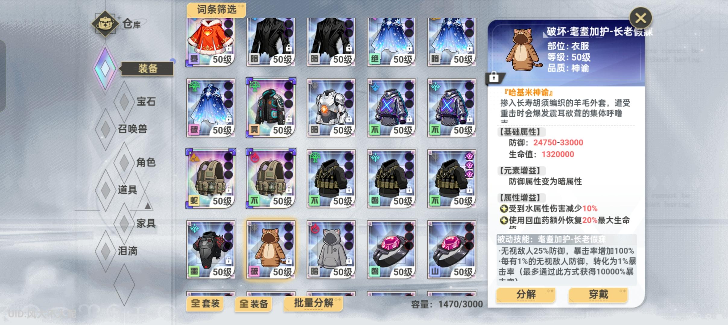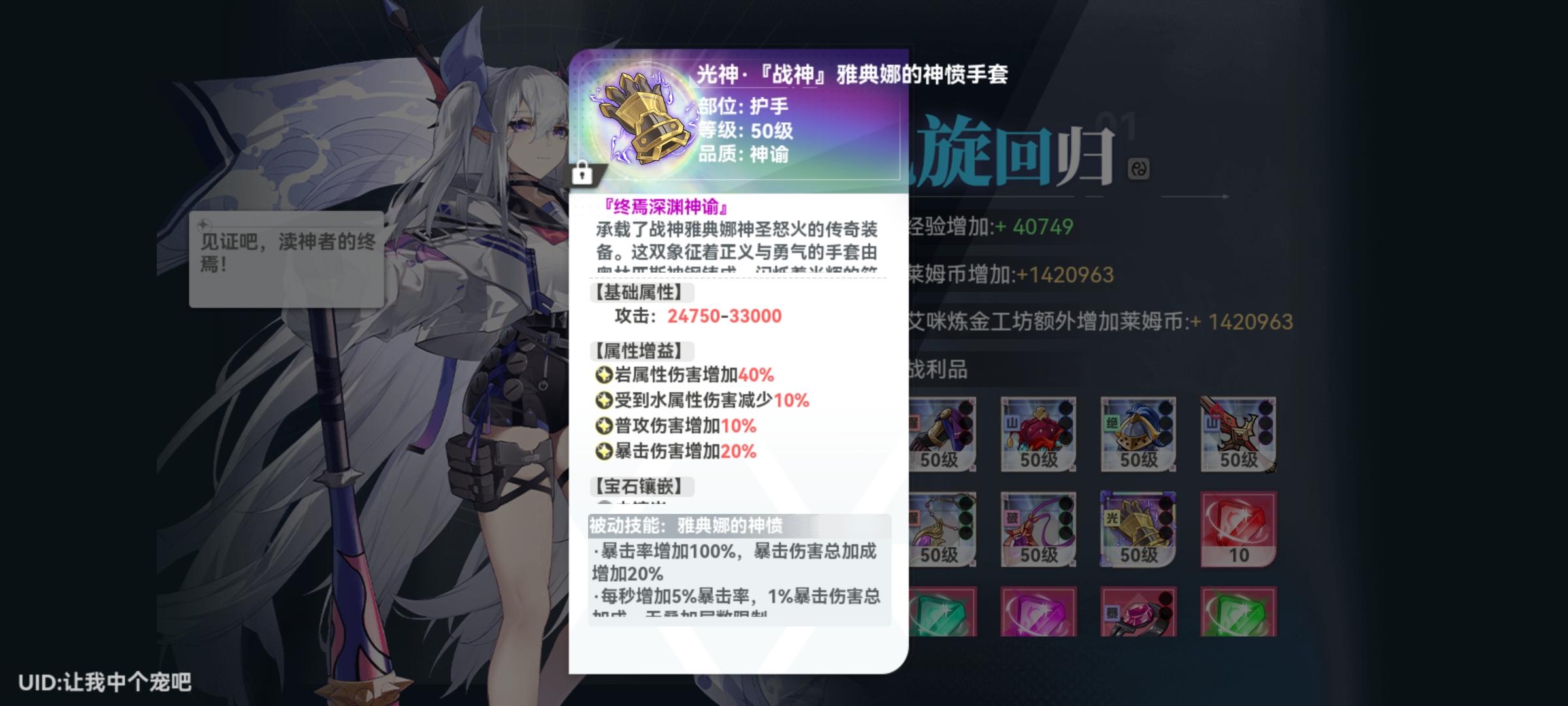 够肝武器随缘,衣服优先获取①武器宠物流神器,留一个等宠物流崛起。②衣服自带150%暴击,少有的暴击衣服。不禁攻速的情况下神青/能量流可以搭配三傲慢护石+刹那芳华鞋子+终焉鱼斯拉卡片相当于半只哪吒2500%暴击。