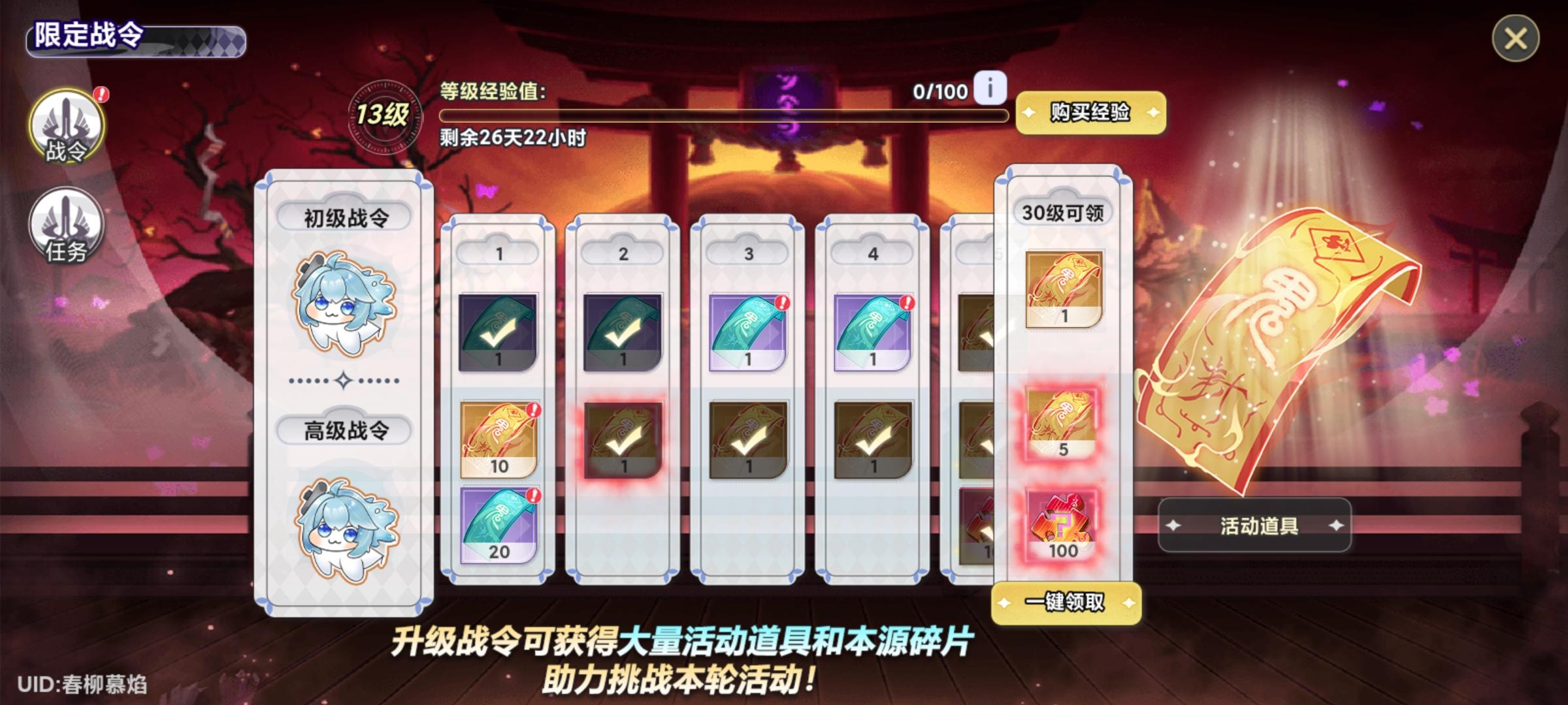 带战令,2000到3000以上就行了,每天打就行