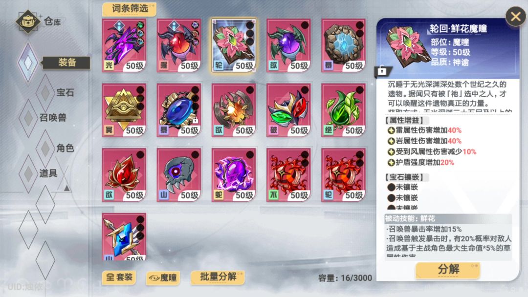 我刷满了存货,1件独特和69件神谕。分享一下给你们刷。 不氪金168就不出独特货对吧。 山套的秒小怪是因为面板攻击高的结果,我零没有满状态小怪一触即死,满状态面板400万攻击精英怪也灰飞烟灭。6山6欲除了BOSS苟一些一圈满清141也就10分钟。 吐槽一下猩红套,众所周知猩红套除了零,亚团长,龙妈能用其他人避之不及。改版后攻击敌人造成最大生命值5%伤害有护盾多五倍,实测零面板5700万血开盾后伤害