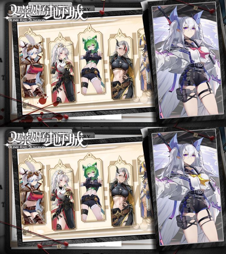 警报来源:浮空高校论坛热议 ——「明明是同一套写真,为什么放大看总觉得哪里怪怪的?」骑士大人!浮空校史馆已开启「档案修复行动」!请速速化身细节侦探,对比下方两张图片,揪出五处关键差异,帮助 yuri 修复校花档案!【活动规则】用文字或者图片标注两张图片的不同之处,并在本帖下发表自己的找茬结果【活动时间】6.13-6.23【活动奖励】抽出20位骑士大人送出高校主题周边#史莱姆与