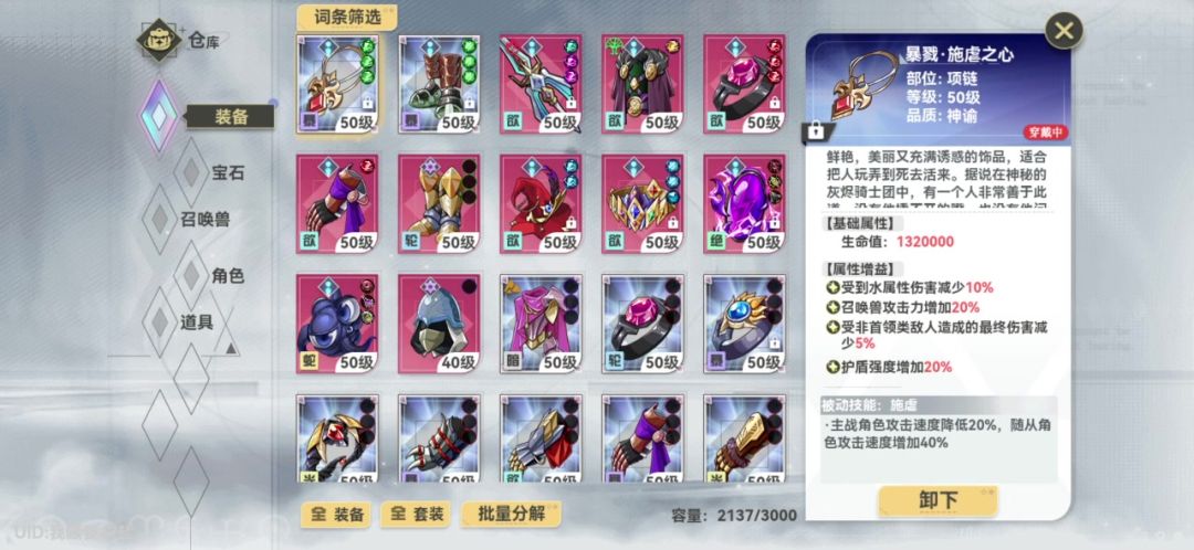我的召唤兽算上继承,冥套,词条,和本身的暴击,最高的暴击率89.6,最低的75.1,可以看到打完定罪后有一个大概40%-50%的降暴
