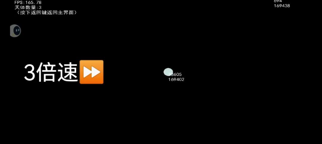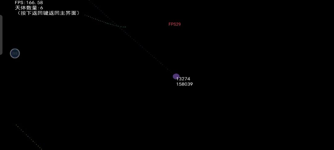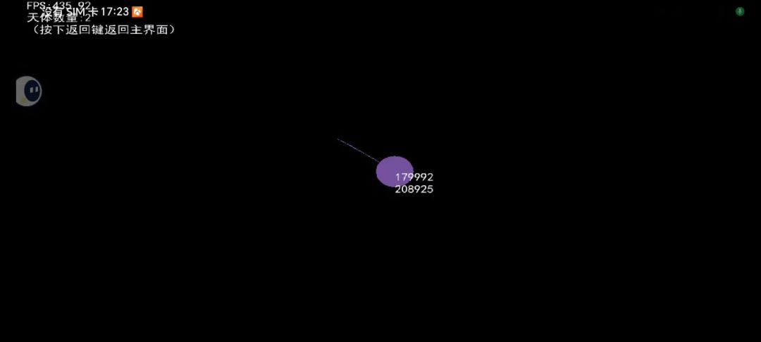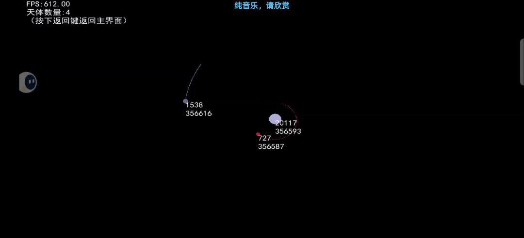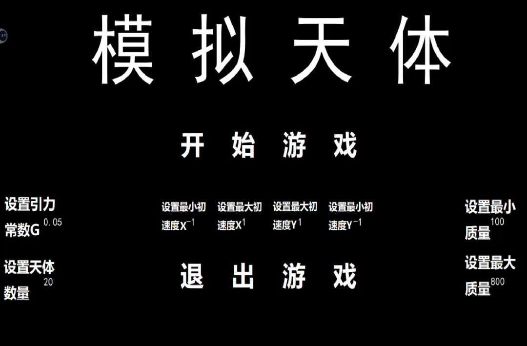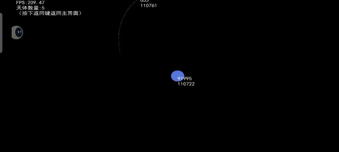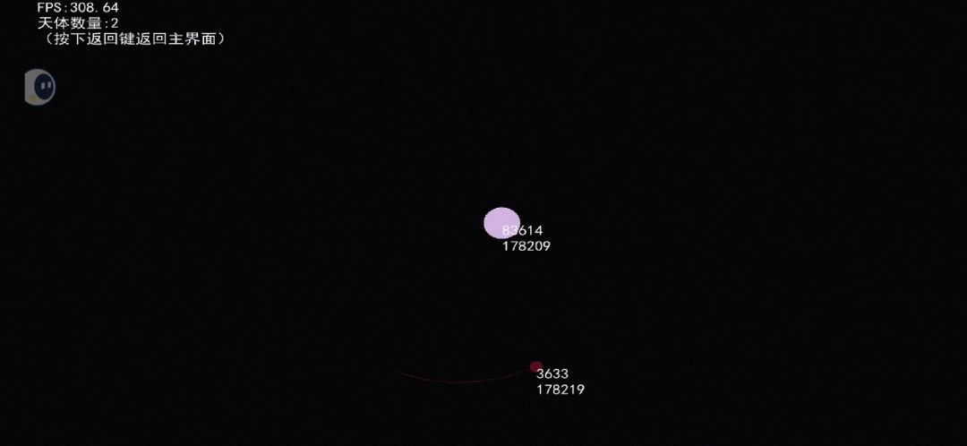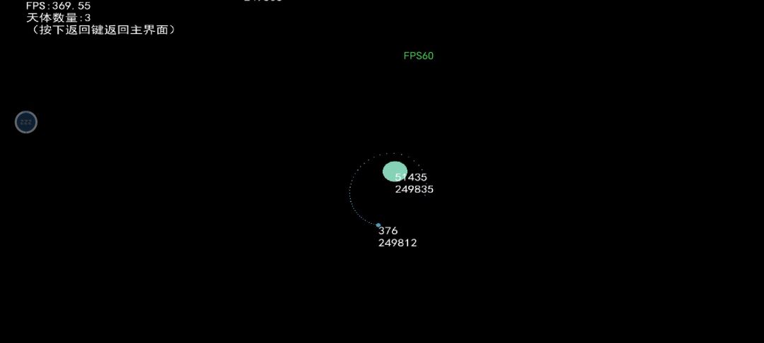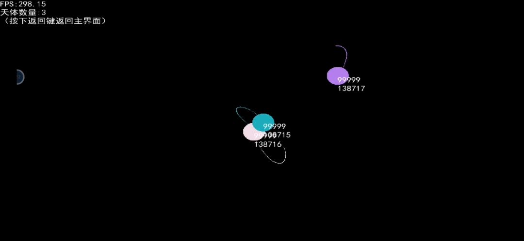 十分的稳定 50个天体引力常数0.1,100至500天体xy速度,最大10最小5