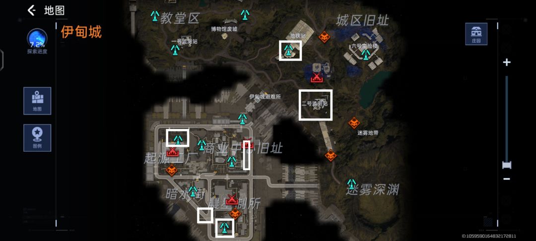 地铁站上面刷新一个(不推荐,容易被人拿) 二号检测站里面刷新俩。(可以试试) 起源工厂两个,一般在工厂内部偶尔会出来。 伊甸城避难所道路有两个,我这个左下角的小方块标注的是很大概率出一个的。 商业中心旧址是在建筑物里面很大概率刷出,也有可能刷到外面。 晨星制所:存疑,以前捡到过俩个广告牌。 起源和商业中间的区域上边和下边都有可能刷广告牌,上限两个!#星球重启创作征集#攻略#游戏安利#游戏推荐#游戏讨论