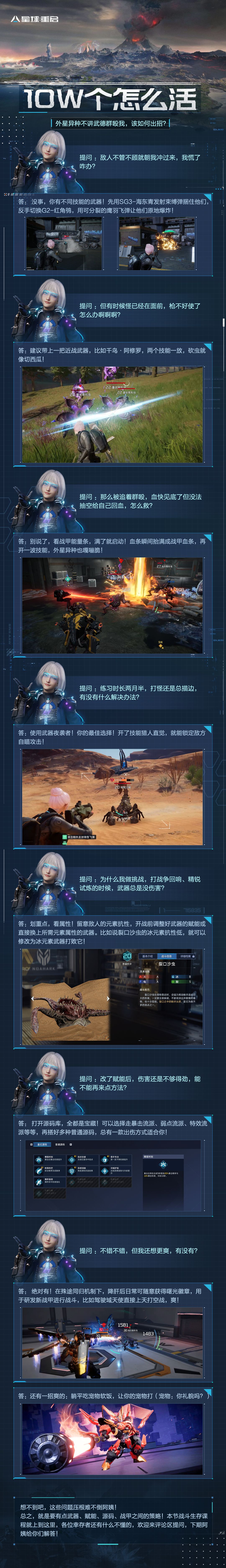 幸存者们早上中午晚上好! 又是我,身兼多职的扫地阿姨! 相信各位在《星球:重启》里都有过这样的经历:刚想和boss来场勇士的决斗,异种小弟就跑过来大喊你们不要再打了;拥有一把高科技武器,打在怪上没有完全发挥实力? 很正常,因为每种外星异种都有专属的攻击机制、元素抗性、独特弱点,需要来点策略,搭配好武器技能、赋能、源码,用好战甲,对症下药就能轻松解决~ 今天,阿姨就来给你们分享一波绝密战斗经验!保证