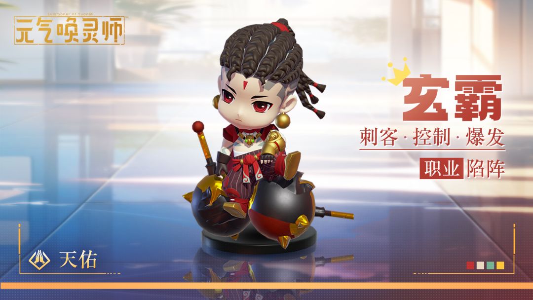新鲜事我来报,我是云中阁小灵通——小灵珑~~ 今天小灵珑要为唤灵师的各位介绍一位新伙伴:神力无双——玄霸! 玄霸 职业 | 天佑 阵营 | 陷阵 定位 | 刺客 控制 爆发 玄家乃天佑国一个中等之家。玄家幼子玄霸天生力大无比,7、8岁时就可单手举起百斤重物。玄父从小教导他为人和善,又怕他会因为怪力受到歧视,索性告诫玄霸不许离家半步。一日半夜,一个无赖将千斤重的铁狮堵在玄家门口,威胁玄父花钱消灾。玄