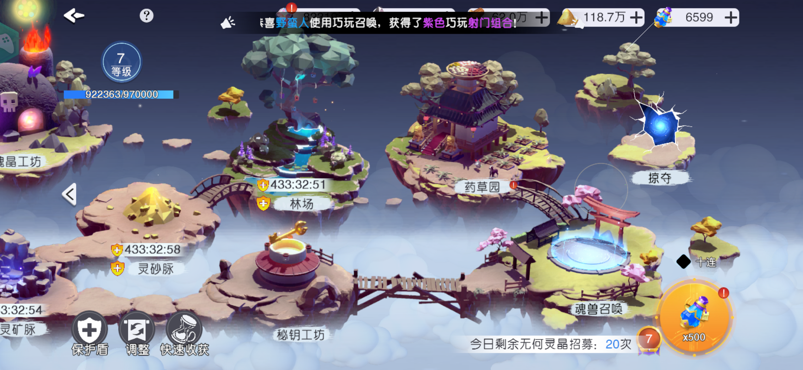 1、建筑升级升级顺序:灵砂脉,林场,灵脉矿,密钥工坊🟰魂兽工坊,农田,药草园可以不升,不缺2、神机宝箱,魂兽召唤神机宝箱不用攒,太古魂晶刚开通家园可以攒一波,等建筑升到6级抽一波,魂兽召唤建筑等级越高高品质几率会大一些,6级前相对容易提升,后面灵砂需求比较大,前期可以攒一波6级抽一波3:掠夺只抢灵砂,木材,灵脉,尽量抢1w以上数量的,前期区活跃的情况可能没得抢5k➕也可以接受4:魂兽携