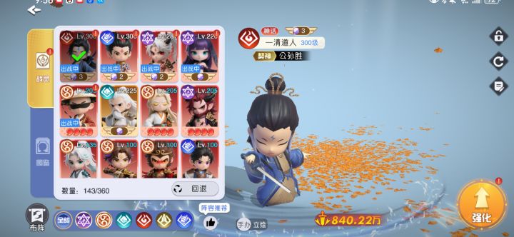 没算错的话,开服大概50天了吧,目前战力5000多万,跨服排行榜正常能进前20。紫色修罗和蓝色昊武的英雄碎片总体占比较多。我之前是想一队修罗,一队天神,都按官方推荐的最强队伍配置去搞,后来发现天太缺了!搞不了!魂兽、剑法、饰品、巧玩、契神 都还算可以。这游戏除了人少、不听劝、时不时出点bug,暂时没其他大问题。