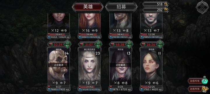 刚刚通过一周目,问题佣兵无法解雇,无法通过的关卡重复刷无法获得金币经验,进入二周目后矿场会被刷新,从一级开始,建议一周目升级建筑差不多再进二周目,目前版本只要角色进入战斗脱掉装备数值也不会减少,所以进图后脱下装备给其他佣兵高效利用,下面是我的几个佣兵技能,新人择优选择。