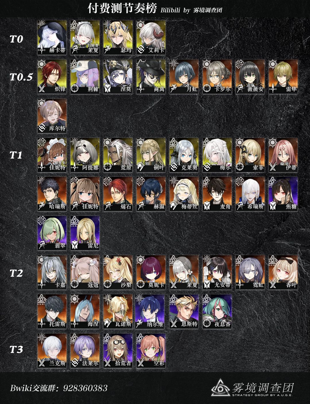 雾境序列最新节奏榜强度榜V1.0,公测开服什么角色值得养?新角色银朱、莎美、罗塞尔